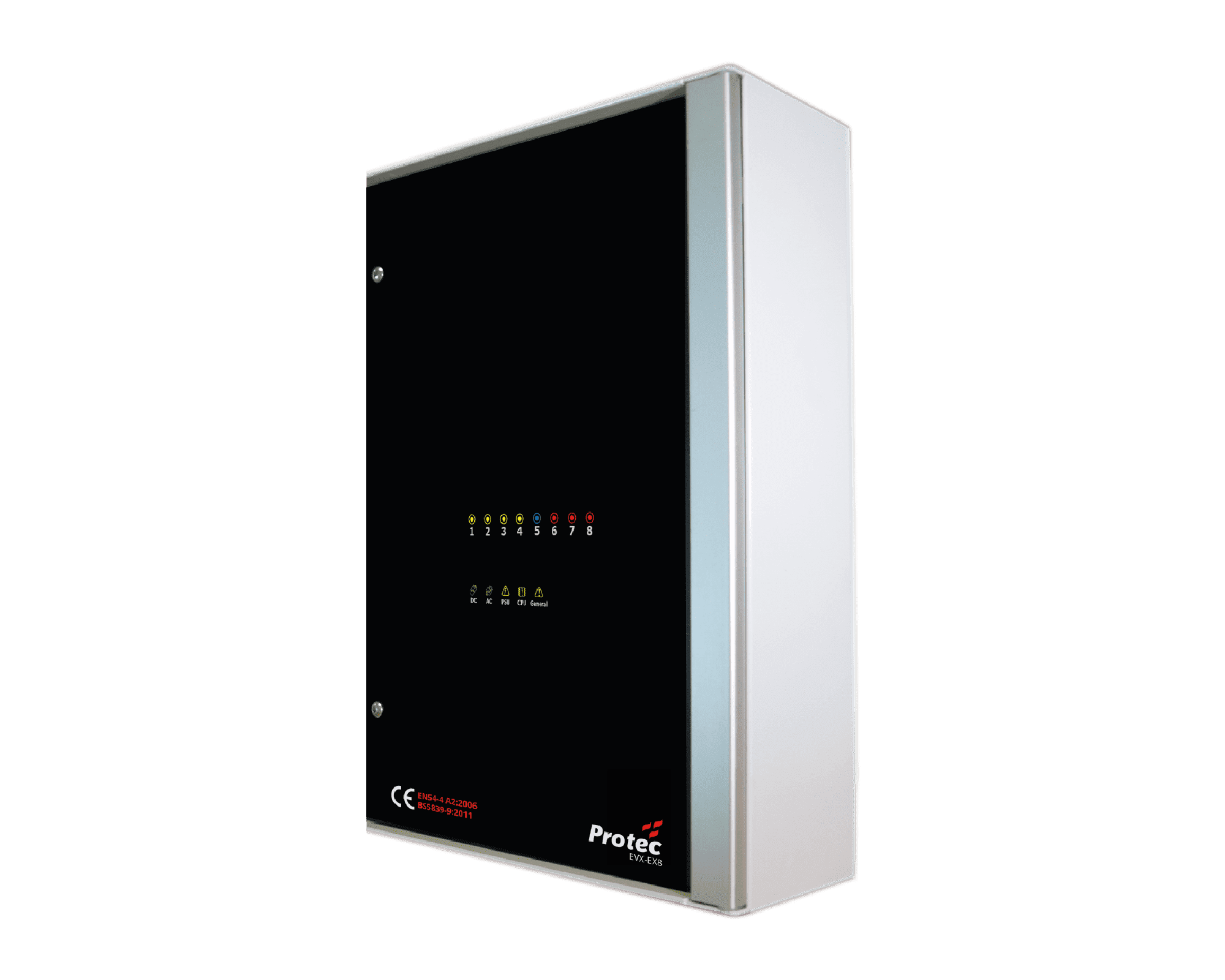 The case is made from powder coated zintec, with a smoked perspex door covering the handset. 20mm cable knock- outs are provided for all necessary cables as well as space for the single 12V VRSLA backup battery required.