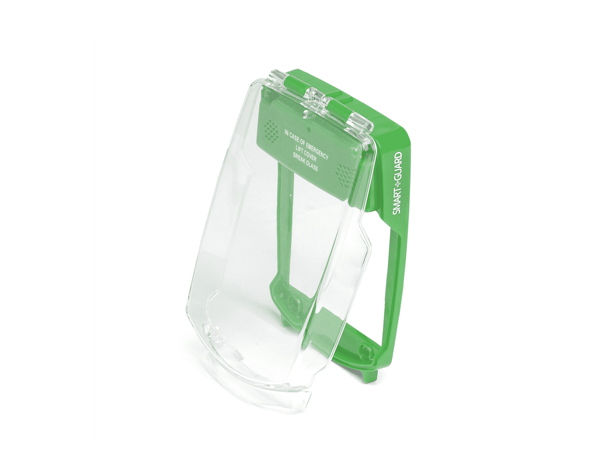 The Smart+Guard is a tough polycarbonate hinged protective cover that can easily be installed over a range of call points, emergency switches and other devices to provide protection from vandalism, accidental damage or misuse.